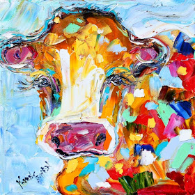 While browsing Pinterest one morning I came across this beautiful angel painting and immediately fell in love. I adore paintings done with all that texture more than any other style so I went browsing, trying to get a little more information on the artist and her technique. Pinterest links back to an Etsy shop called Karen's Fine Art and an array of gorgeous paintings ranging from florals and whimsical animals to beautiful angels and sailboats. Some really great stuff.Karen is a prolific painter who busts out a completed painting nearly every single day and sales them on her Etsy site. As well as doing commissioned work.
